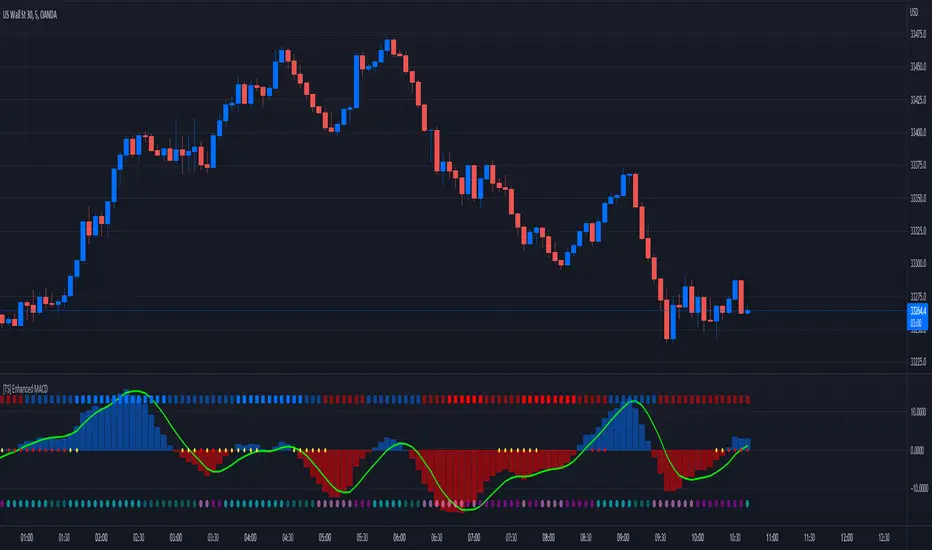 It displays the MACD Histogram as a normalized oscillator for a better visual representation (With values between -100 to 100)