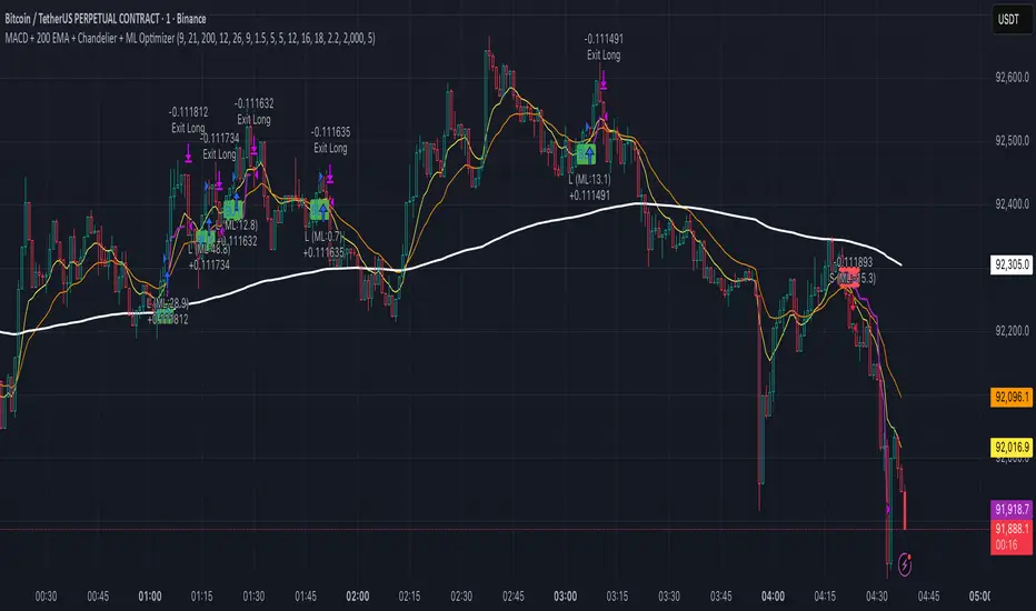 MACD + 200 EMA + Chandelier + ML Optimizer