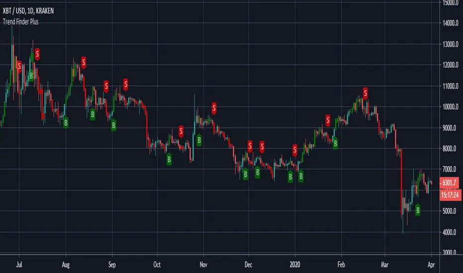 Editable settings include a custom "Trend Finder" length and the usual settings for utilizing a "Stochastic RSI".