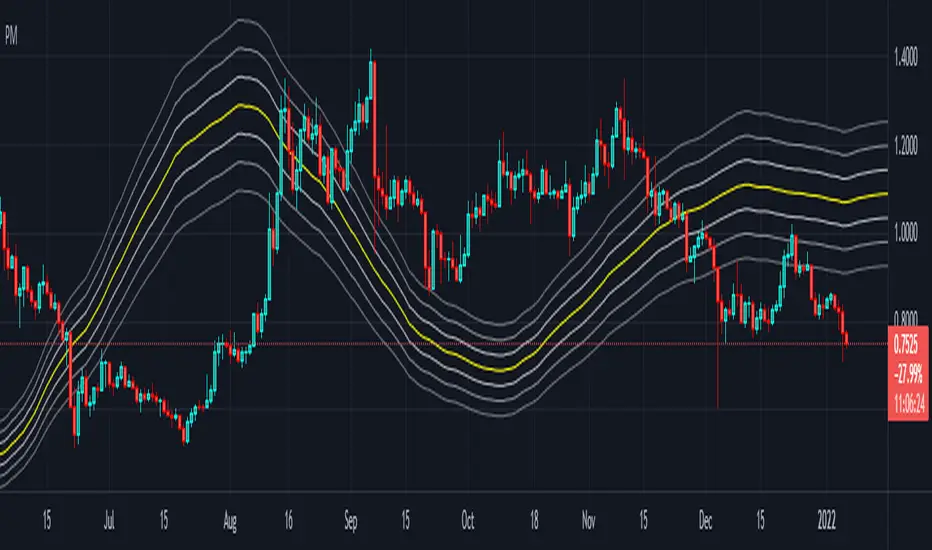 it's just an average moving multiplied by a percentage. this is good for measuring the acceleration of price movements