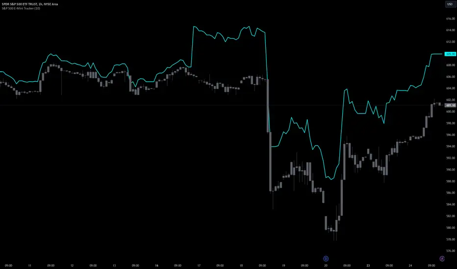 This script generates a reference price for the S&P 500 ETF - SPY based on the current price of the ES contract, which is an E-Mini Futures contract representing the S&P 500 index. The indicator plots this reference price on the chart, providing a unique view of the relationship between these two popular markets.