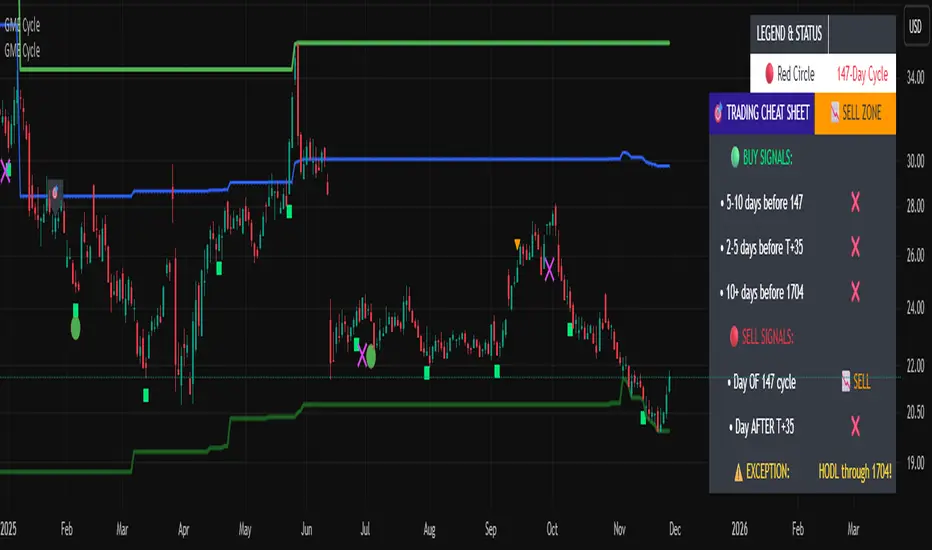 - **📈 BUY ZONE**: 5-10 days before 147-day cycle
