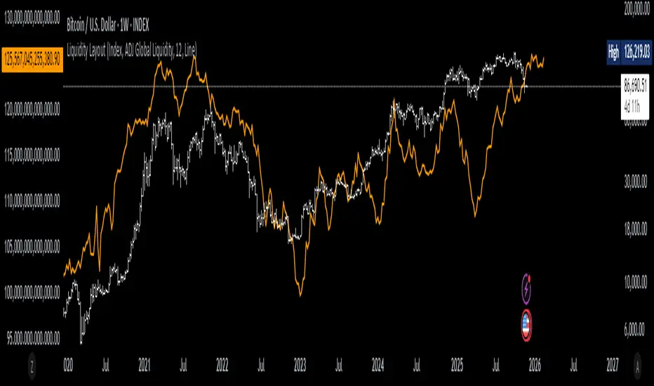 The Liquidity Layout is a comprehensive macroeconomic indicator that tracks global liquidity conditions by aggregating multiple financial data streams from major economies (US, EU, China, Japan, UK, Canada, Switzerland). It provides traders with a macro view of market liquidity to help identify favorable conditions for risk assets