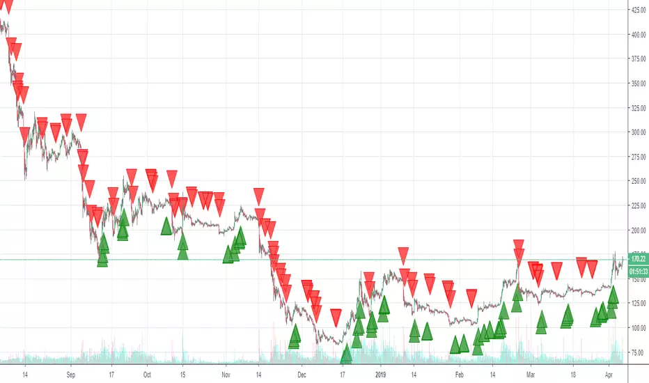 How to use: This indicator waits for confirmation and paints a bull (green triangle) signal when it expects an uptrend. It will also paint a bear (red triangle) when it expects a downtrend. You can also set alerts for this indicator.