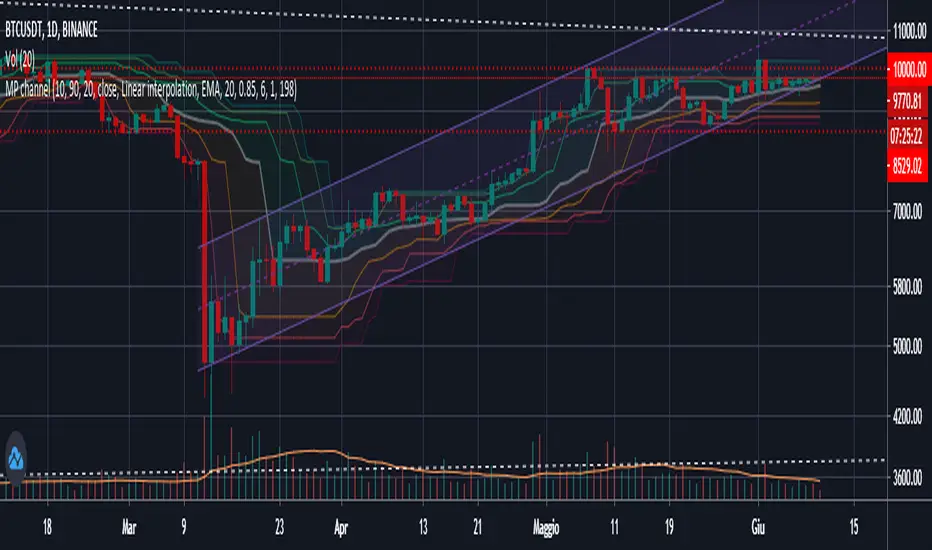This script plots moving percentiles of past price distribution, creating a channel useful for trend and volatility analysis, and for operational purposes also. Percentiles are more robust than common moving averages when it comes to address noise during lateral price movements.
