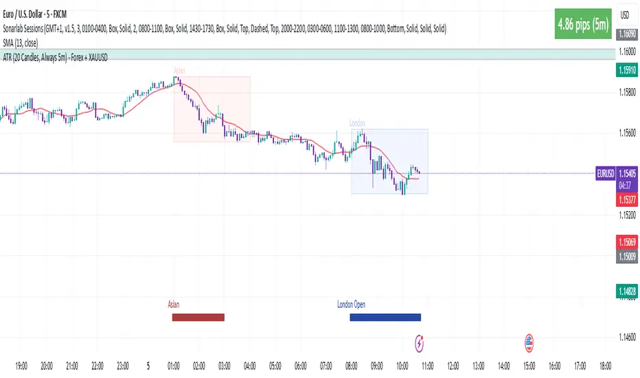 This indicator displays the Average True Range (ATR) over the last 20 candles, calculated using the 5-minute timeframe, regardless of the chart timeframe you're currently viewing.