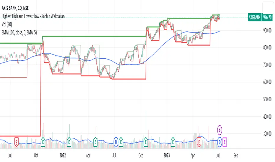 The "Highest High and Lowest Low" indicator, created by Sachin Wakpaijan, is a powerful tool designed to identify the highest high and lowest low in a trading instrument's price history. This indicator can be used on TradingView to gain insights into significant price levels and potential trend reversals.