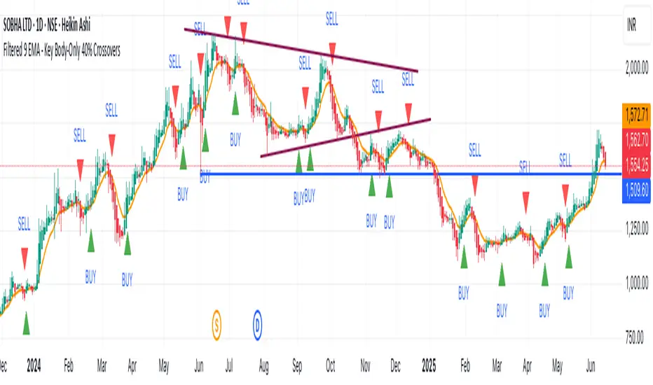 This script identifies potential trend reversal points using Heikin-Ashi candles and the 9-period Exponential Moving Average (EMA). A signal is generated only when: