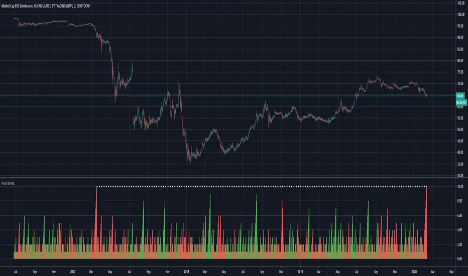 Because it simply counts the candles in a trend, Price Streak can give a clearer picture than magnitude-biased indicators like relative strength or MACD.
