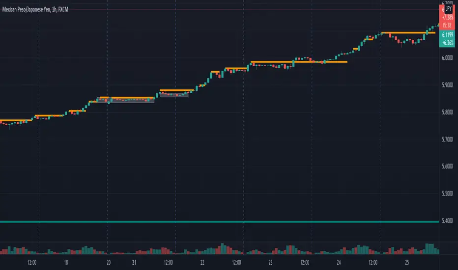 Updated script with the ability to extend lines to the right and added the ability to add an alert when a new SR level is created. Setting higher timeframe levels now scales the chart correctly. It is recommended to set the timeframe on "Same as Symbol". The best way to add price alerts are to click on the chart at the level and manually add the price alert. Extending lines manually also works well by dropping a horizontal line at the level if you want to continue to monitor that level after the line ends.Nota Keluaran