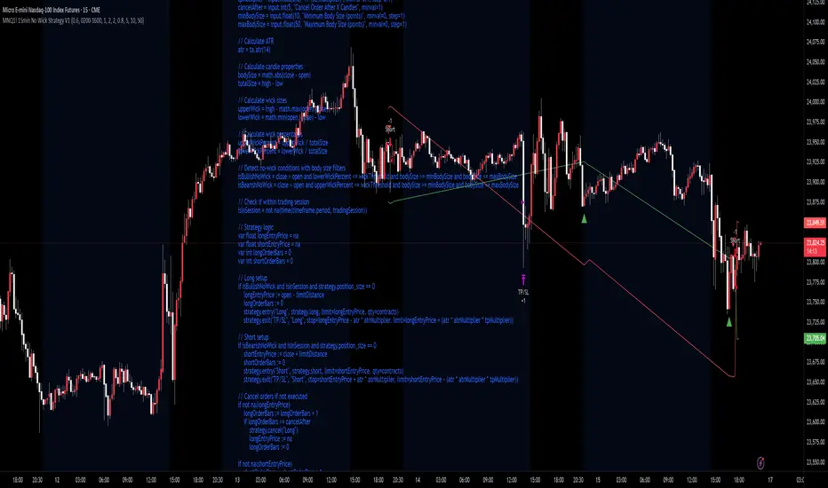 No Wick Strategy - Complete Professional Trading SystemThis is a comprehensive momentum-based trading strategy that identifies and trades "no wick" candles - a powerful price action pattern indicating strong directional conviction in the market.