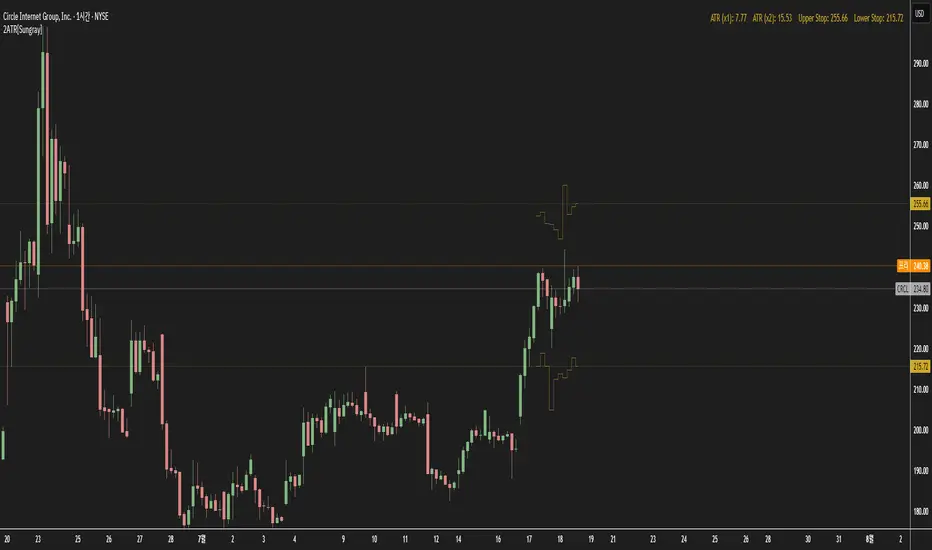 Sungray ATR Stop Finder는 2ATR 기준으로 상단(Short Stop)과 하단(Long Stop) 라인을 표시하도록 설계된 인디케이터입니다.
