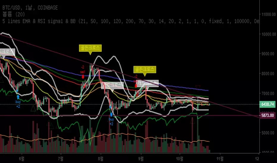It just merged 5 lines ema, rsi band, 2 Bollinger Bands.