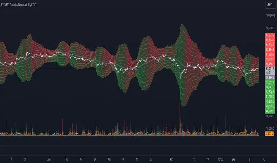 : Calculates 7 sets of bollinger bands, with 7 different standard deviations