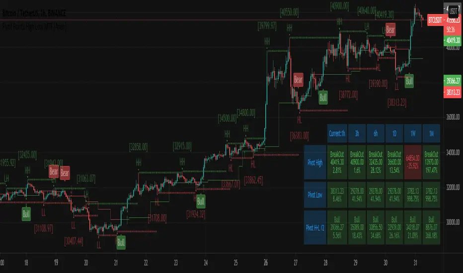 Pivot Points High Low with Multi Time Frames support and bull/bear signal depends on pivot average