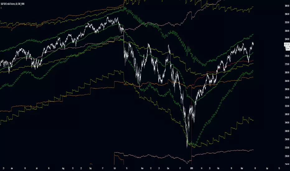 This multi-timeframe 21-period true range channel uses an improved calculation to accurately calculate the indicator's value with every new bar on the time frame your chart is set to. Previously the indicator only recalculated with every new update on the timeframe used in its security function. This means that this improved script plots the real, current value of your indicator across your chosen timeframes on your chart's resolution and no longer only plots only the indicator's monthly/weekly/daily/4 hour/ect closing value on the your chart.