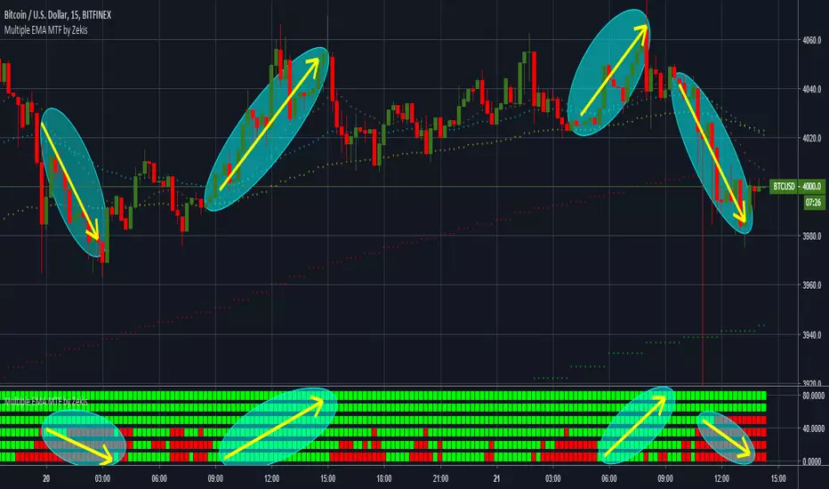 I put 6 time frames for one EMA as bricks, sometimes is hard to see if a line is above or below the price and you need to zoom and zoom, so with this way of view, it will be easier.