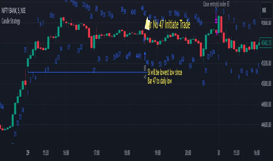 Note - this strategy can be also use for static to understand which candle will make low/high of the day high chance Example in bank nifty 5 minutes chart candle no 47 have highest trade