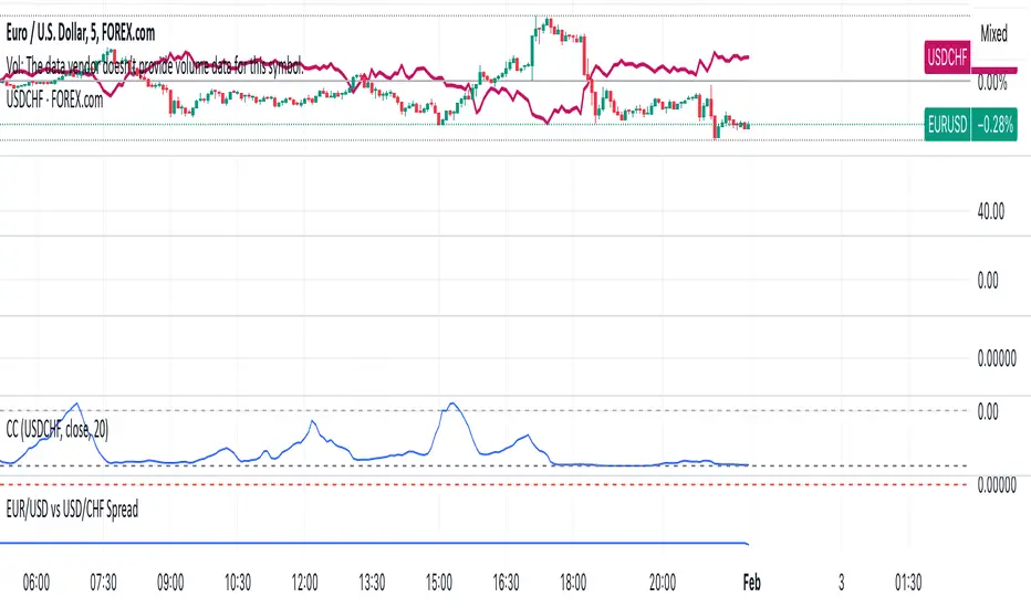 Computing the Spread: Taking the difference between EUR/USD and the synthetic EUR/CHF price.