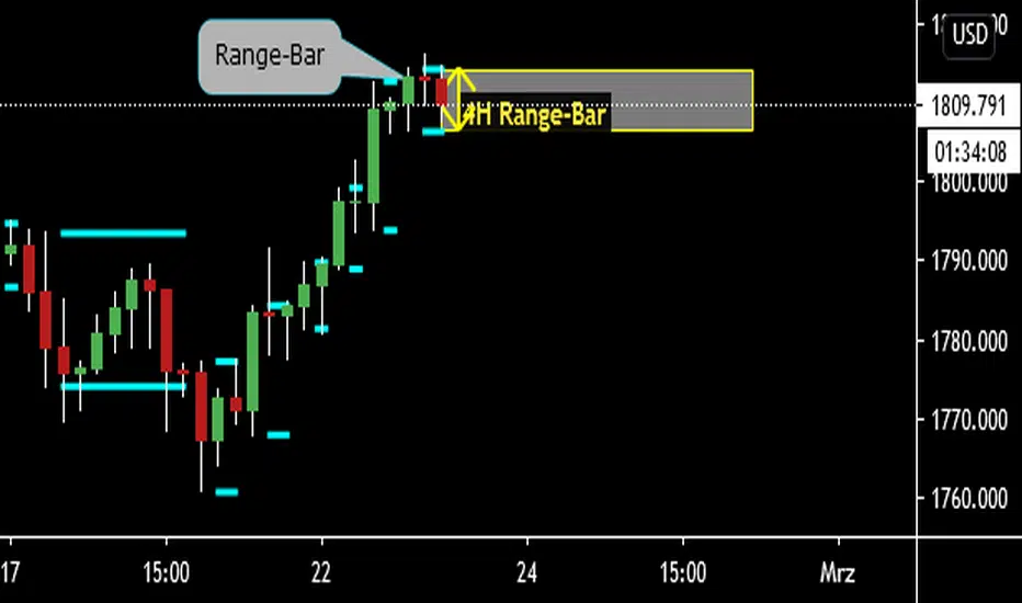 The indicator shows you the range bar as a channel and automatically draws it on the chart. The indicator adapts automatically to each chart time.