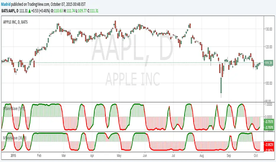 In the example I used 36 as the cycle to be analyzed and a second cycle with a shorter period, 9, the larger period tells where the dominant cycle is heading, and the faster cycle signals entry/exit points and reversals.
