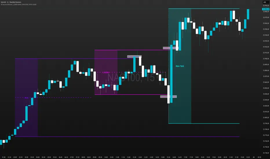 This indicator is designed as a session structure and liquidity context tool and does not generate trade, entry, or exit signals.
