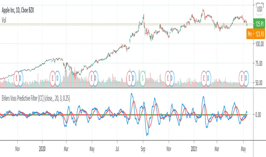 The Voss Predictive Filter was created by John Ehlers (Stocks and Commodities August 2019) and this is a unique indicator in that it tries to predict future price action. I have color coded the middle line to show buy and sell signals so buy when the line turns green and sell when it turns red.