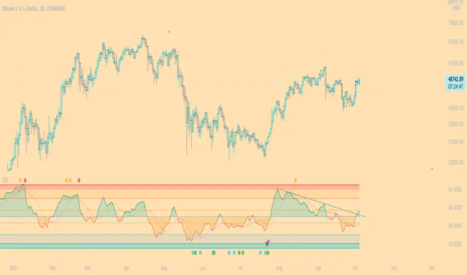 The DSI is a volume weighted momentum indicator similar but superior to the traditional RSI.