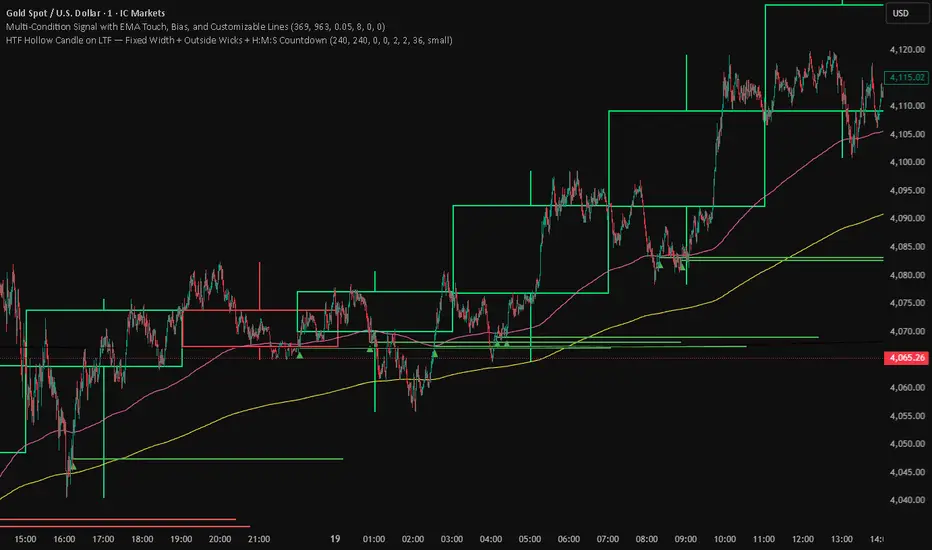 overlays HTF candle ontop of price so you can watch m1 chart filling up an h4 bar