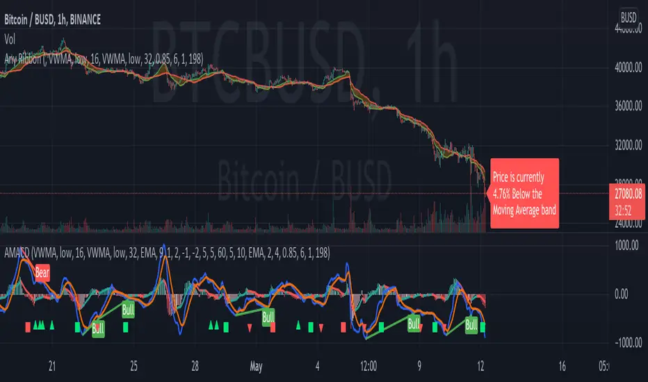 • Moving averages are now plotted to display.none as well in case you want to see the price and the moving averages for testing. You're much better off running my other script 'Any Ribbon' on the top pane to show the moving averages ribbon, but these options enable you to show them here if you want to.