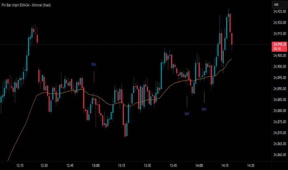 pin bar candlestick reaction at ema34 shows strong rejection force, can catch reversal trend.