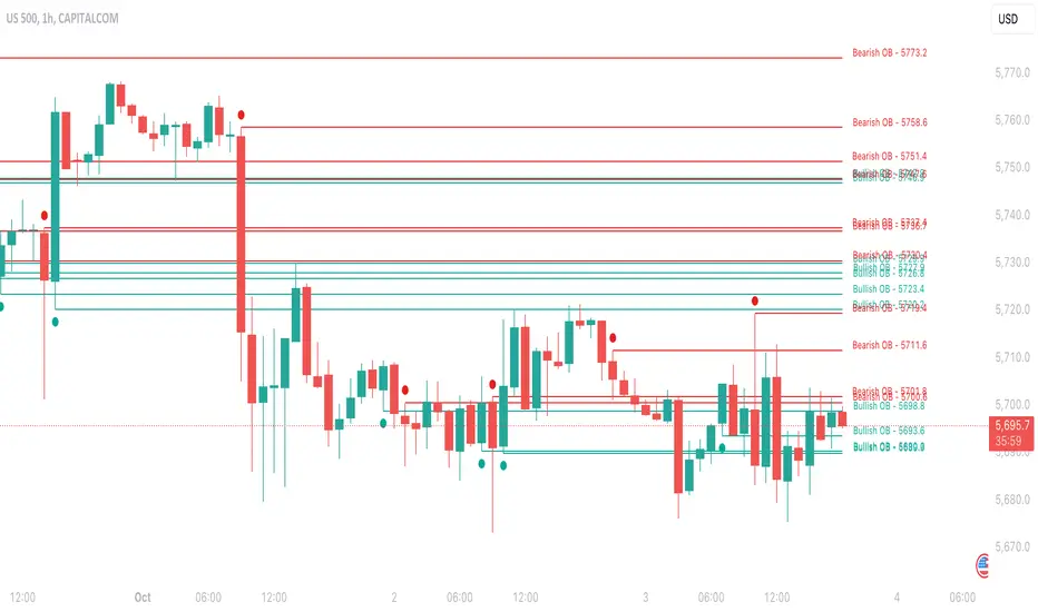 -Added Upper Line for Bullish OB and Lower Line for Bearish OB. Represented in dotted line they allow to have more confirmation of trend recovery.-Minor fix.