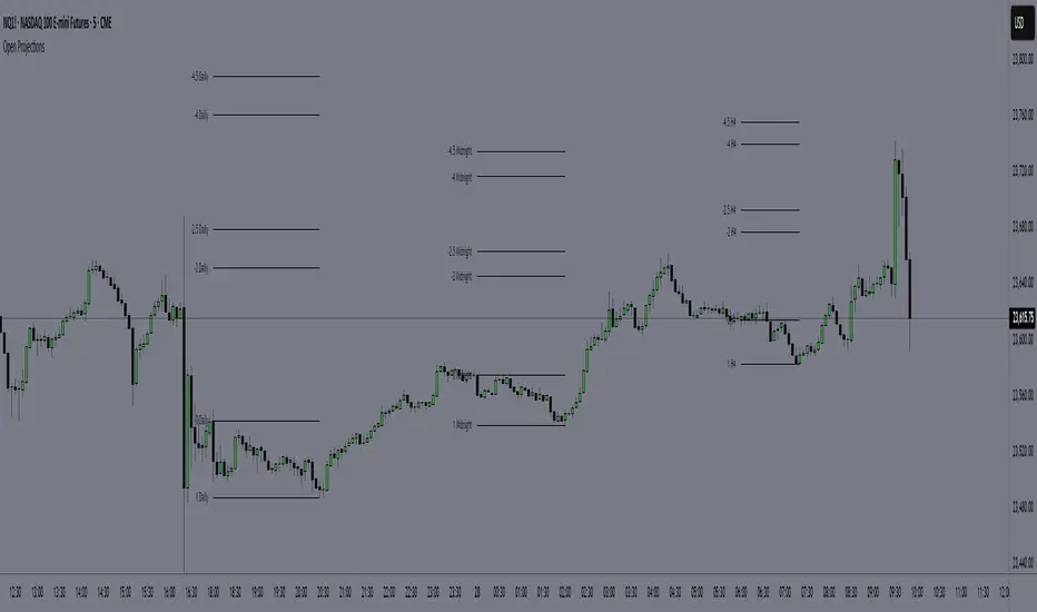 - Delayed Plotting: Set a delay (in minutes) after open before projections appear, useful to avoid false early swings