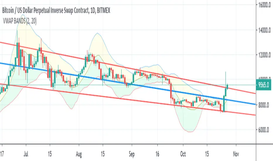 /ode for band take from linear regression script from pine script manual and adopted to VWAP