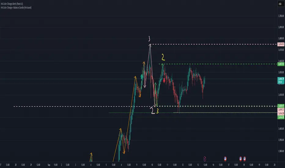 📌 Heikin Ashi Color Change + Balance Candle AlertsThis indicator combines Heikin Ashi color change alerts with Balance Candle detection for more precise trading signals.