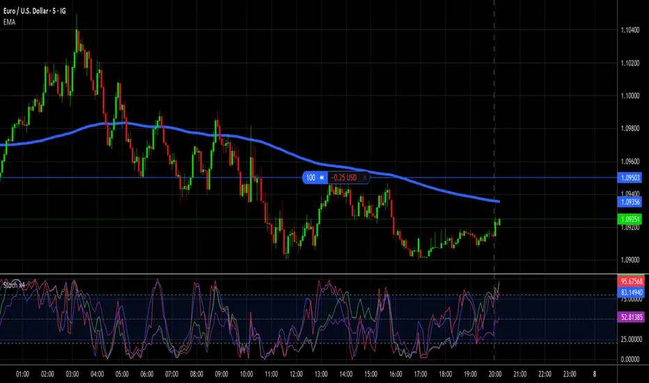 The Quad Rotation Strategy is a momentum-based technical analysis tool that overlays four distinct Stochastic %K lines on a single chart. Each line is calculated using a unique set of parameters, allowing traders to visualize and compare momentum signals across varying sensitivities — from fast-reacting setups to slower, trend-confirming ones.