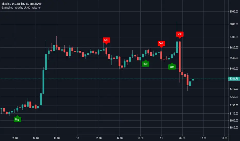 Intraday indicator based off a simple moving average/momentum indicator, works best on lower time frames such as 45m. Last version got reported by some LARP. Backtesting works very well as Long Only script.