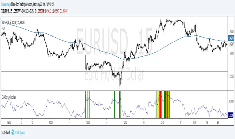 Green Threshold: When spread is above 95th percentile of the last X bars a vertical green line is displayed. Only 5% of the time the spread will exceed this threshold.