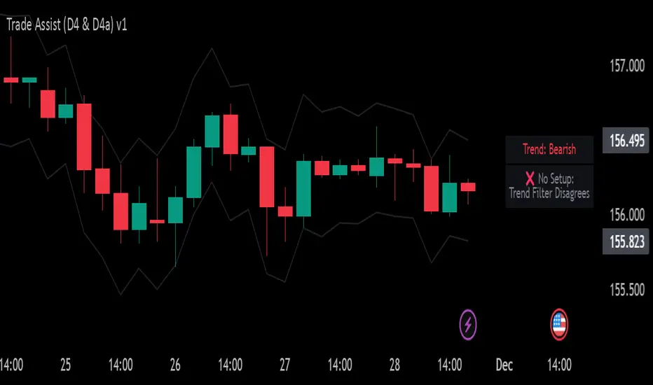 Trade Assist is a comprehensive systematic trading indicator designed for forex traders who follow disciplined, rule-based approaches. This indicator eliminates subjectivity by providing clear setup validation with visual confirmations and real-time alerts.