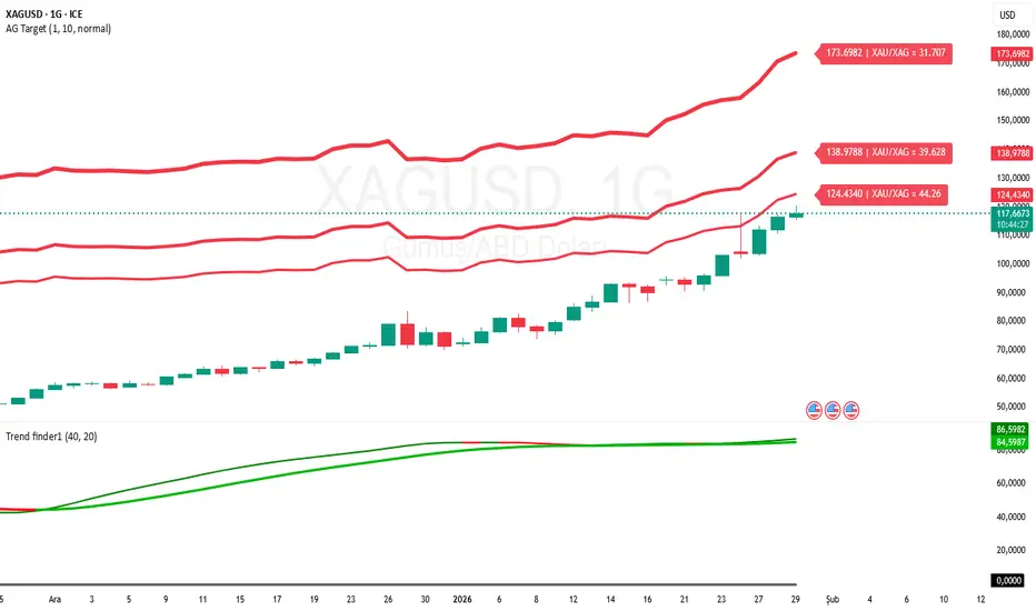 AG Target is a ratio-based indicator designed to analyze Silver (XAGUSD) using the price of Gold (XAUUSD) as a reference.
