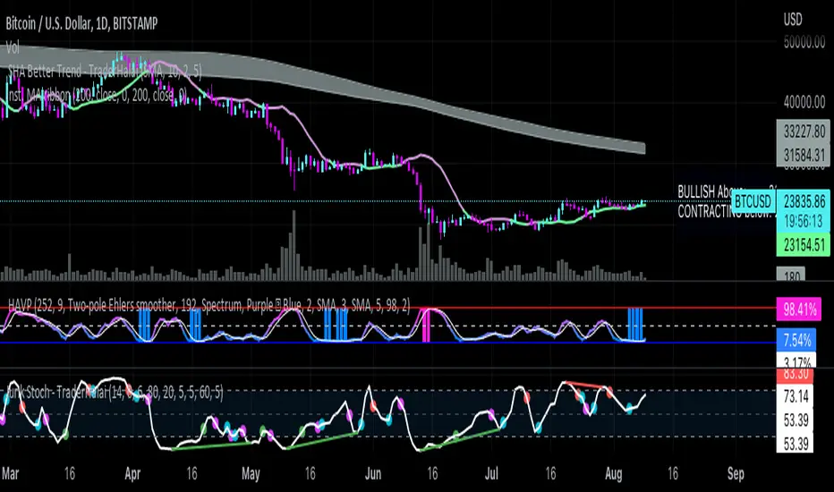 This indicator aims to improve on the plots the %K value smoothed using a Jurik Filter instead of a simple moving average. This allows for a more adaptive K value average price, whilst also providing superior smoothing to traditional moving averages.