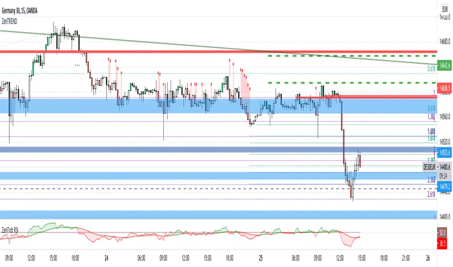 ZenTREND analyises the waves on the Weekly, Daily, H4 and H1, and shows trades when all the time frames are in sync. Bar colors show the trend on the current time frame. Stop lines are supertrend stop levels.Skrip dilindungi