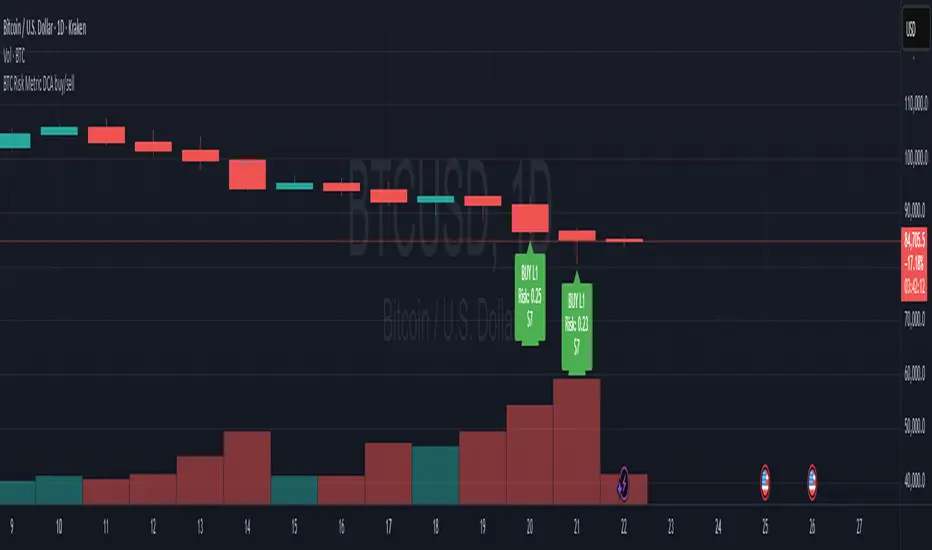 Sell L1 & L2: Closes a percentage of the current position when the Risk Metric reaches defined high thresholds, locking in partial profits.