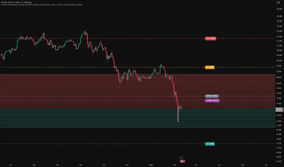 Grid Bot Demonstrator (v3.5)Grid Bot Demonstrator is a technical visualizer designed to act as a "digital twin" for Grid Trading Bots (specifically optimized for Pionex logic). It allows for precise planning, back-mapping, and real-time monitoring of grid strategies within the TradingView interface.