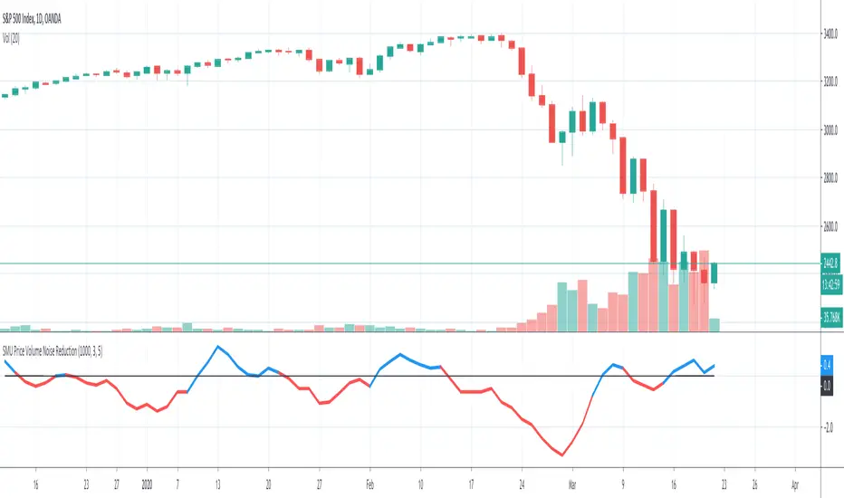 This Script show the price volume movement for different time frame. As you can see large buy/sell has significantly increased before the crash or 2018 and similar pattern is developing for 2019/2020. In shorter time frame, the chart shows daily movement of big volume of Buy/Sell and the low volume period appears as a noise. The idea is to look ta the volume price noise to distinguish big market moves from small side line or low volume movement. Fell free to expand on this idea.