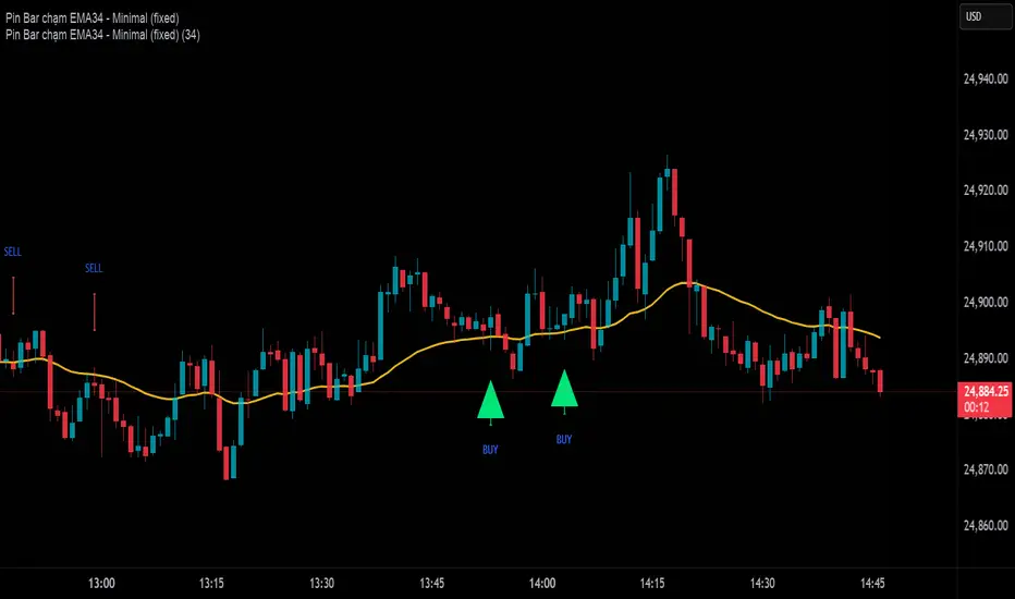 This indicator is pin bar with legs at ema34 which helps us catch order reversal trend.