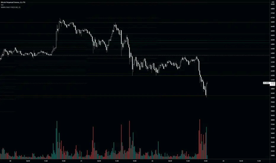 NIBIRU DAILY FIBONACCI plots Fibonacci retracements and extensions for the selected period high-low range.