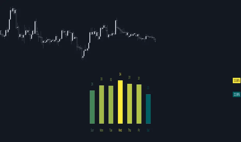 The indicator analyses weekdays from the daily chart, defined by the exchange trading session (see Symbol Info).