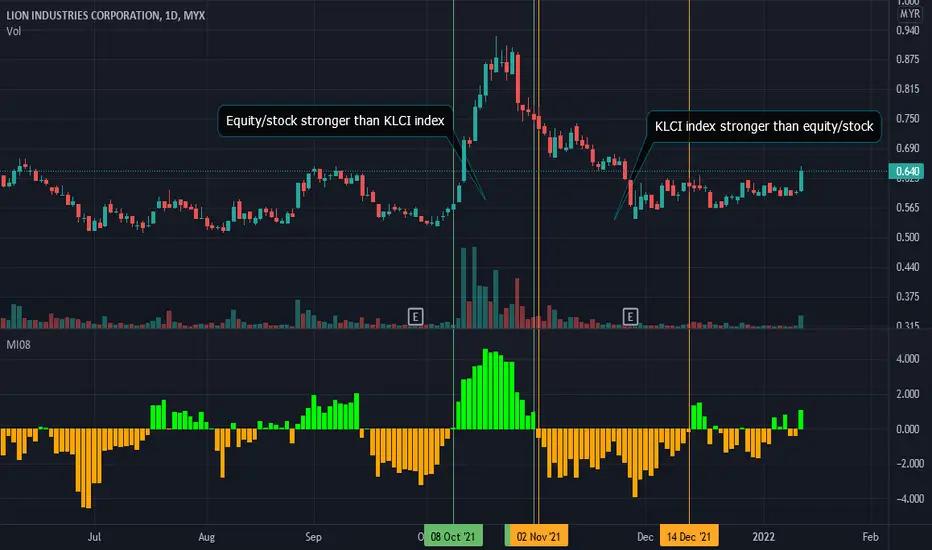 Do not reply exclusively on the indication to trade. It is merely an analytical technique to assit investors in determining the strength and weakness of particular equity/stock relative to the KLCI index.
