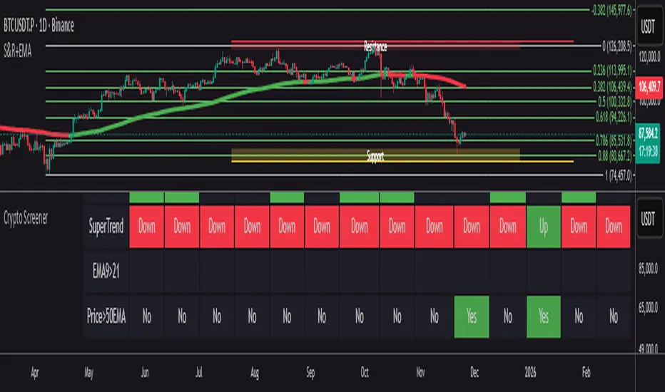 Crypto Screener is a multi-asset data viewer designed to display key indicator values for multiple cryptocurrencies in a clean, customizable table.